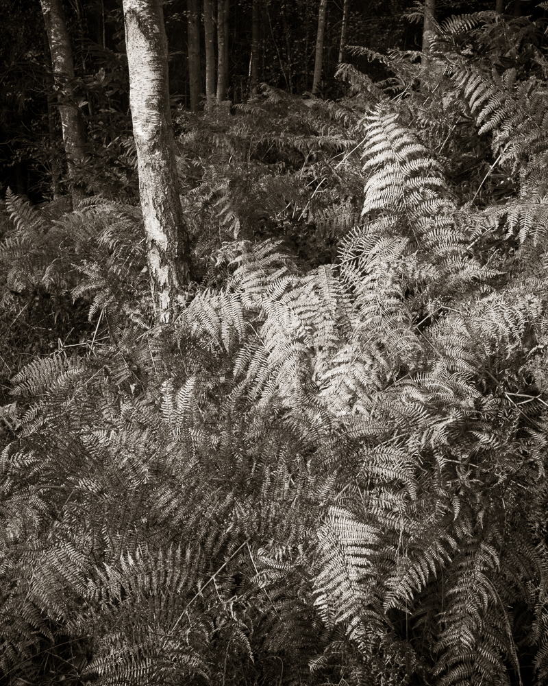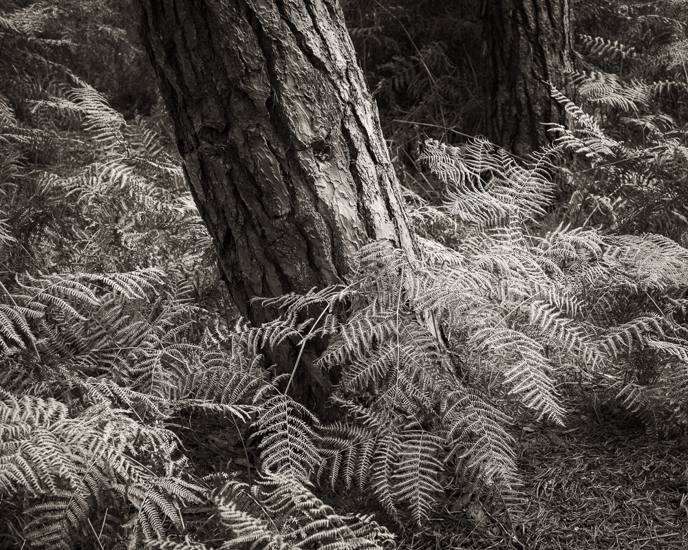 As hard as I try I can’t break out of my comfort zone. Whenever I find myself in a beautiful location which is full of colour, my instinctive monochromatic mind gets the better of me. As I explore the autumnal woodland of Arne Nature Reserve, near Wareham in Dorset I have a perfectly acceptable colour subject in front of me but in visualising and later processing the image I soon strip away all the colour, and work on a black and white conversion, and here is the result. A shot of ‘Bracken’ in amongst conifers.