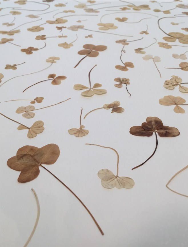 There was also a remarkable display of one her collections – ‘Four, five, six, seven and Nine leaf Clove Collection’. Started when she was a child it later became a lesson in ‘how to find by not looking’. The sheer scale of this collection is hard to portray in a single photograph. I could have repeated the image below many times.