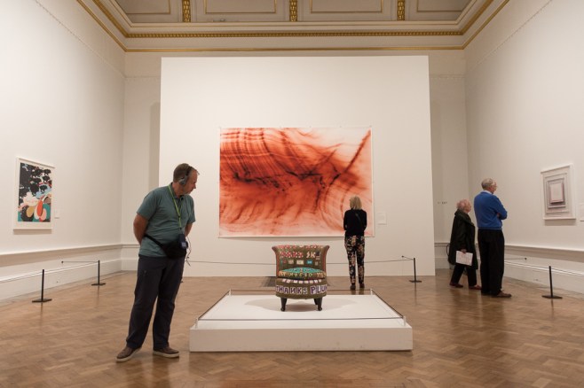 In the last room there was a selection of artworks from more recent times. In the foreground ‘There’s a Lot of Money in Chairs’ from 1994 by Tracey Emin RA and behind it an inkjet photograph by Wolfgang Tillmans RA, titled ‘Greifbar 1’ made in 2014.