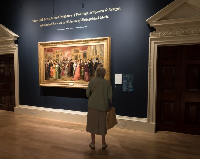 I started my visit with The Great Spectacle, a 250 year history of The RA and its renowned Annual Exhibition which later became The Summer Exhibition. It’s remarkable to think that from 1769 there has been an exhibition every year for leading artists of their day to display paintings, drawings, sculpture and other artworks. Not even two World Wars has prevented this event taking place.