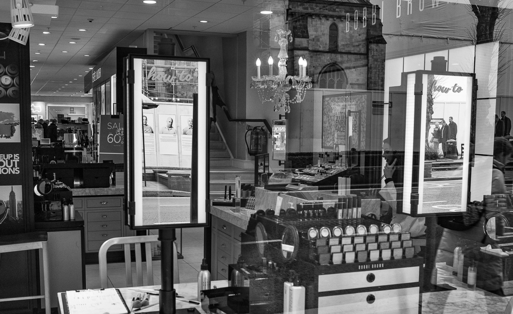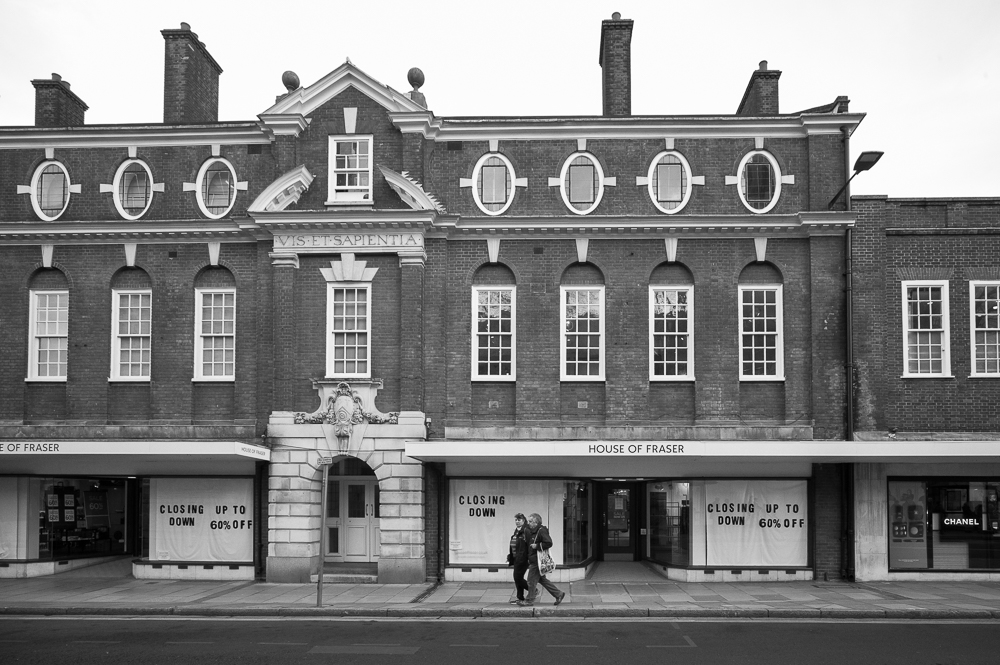 As I walked around taking these pictures I was aware the faces in the portraits were looking across the road to the House of Fraser Department store which is scheduled to close in January. Their reflection could be seen in a mirror in one of the shop’s windows.