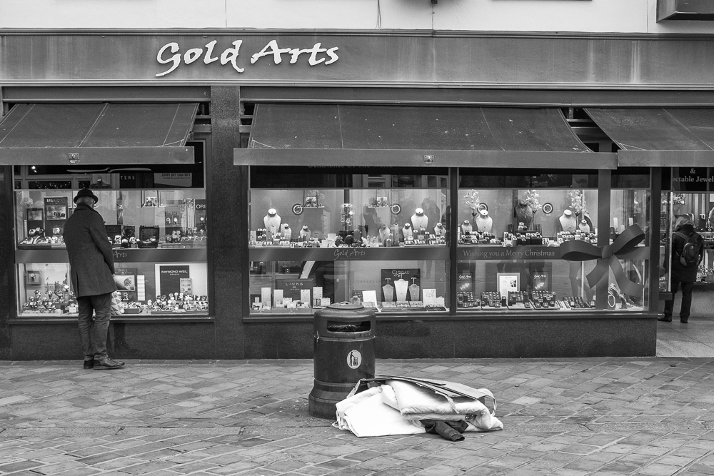 I was in the city just before Christmas – a last minute shopping trip. Being the last Saturday before the 25th December there were plenty of people carrying bags, doubtless full of presents for family and friends or things to eat over the festive period.