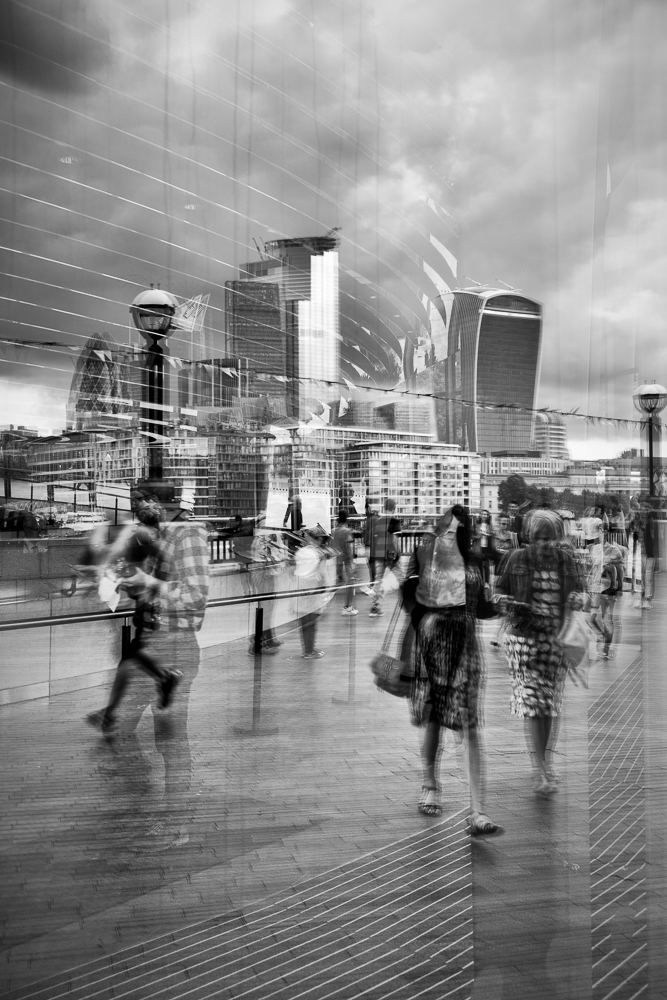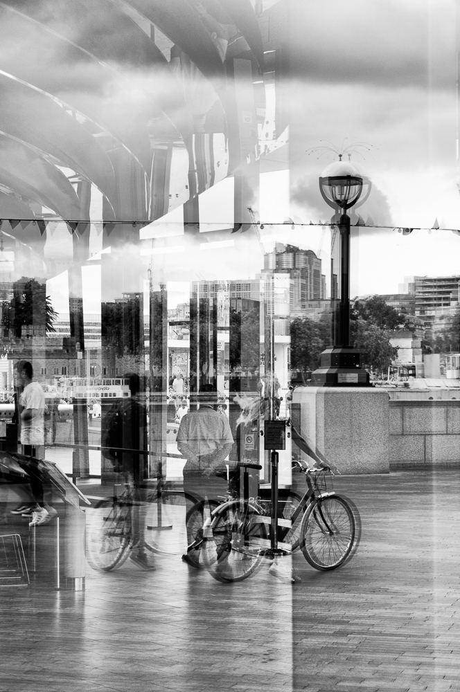 These images were all taken last week near London Bridge station on the south side of the River Thames near City Hall and the iconic Tower Bridge. All the images are single exposures – many are reflections which in some small way I like to think reflect my own feelings about the City Life of London.