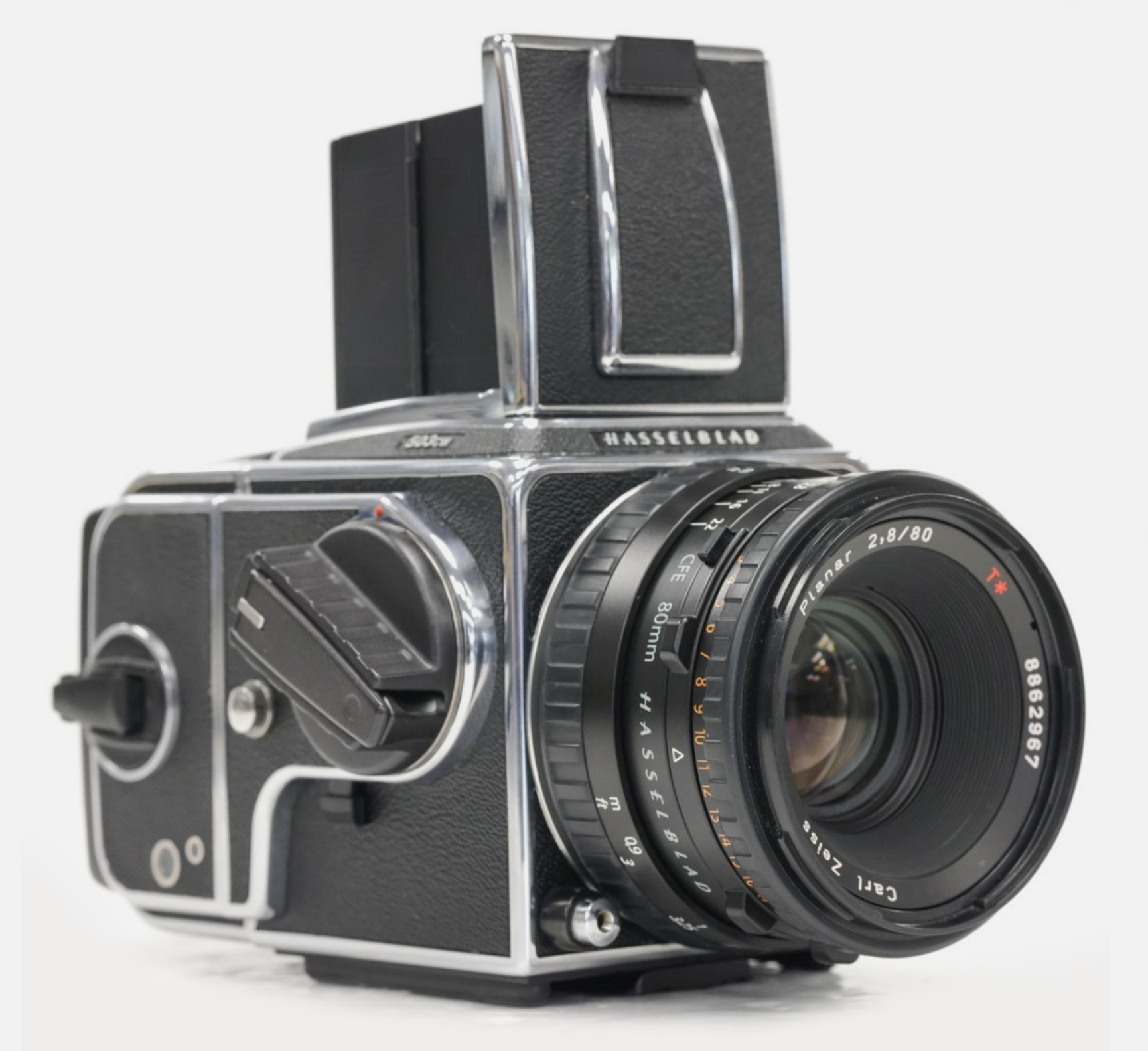 At the premium end of the scale sits the Hasselblad 500 series of cameras, an iconic design. First manufactured in 1957 it is beautifully constructed and offers the skilled photographer the opportunity to make beautiful images. Fully manual with no batteries and no light meter, the 500 is truly an analogue camera. A complete kit (shown below) comprising body, 80mm lens, waist level viewfinder and film back is going to be in the range of £1,500 to well over £3,500 depending upon age and condition. A substantial amount of money but there is every likelihood that these cameras will always be a sought after. Its longevity and appeal were further enhanced when Hasselblad introduced compatible digital film backs.