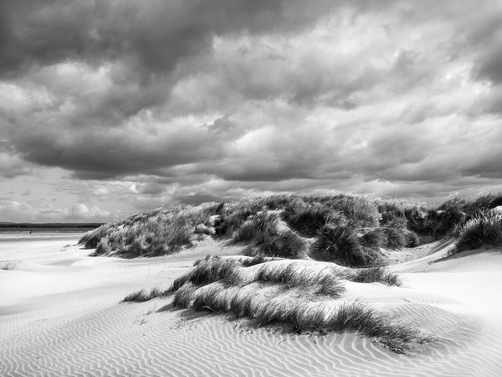 As I walked on the sand I noticed a line of fence posts which roped off a section of the dunes. After all East Head is owned by the National Trust and they are keen to protect this important habitat for wildlife and in particular nesting birds. This was a minimalist image (above) but as I turned round to look in the opposite direction I saw dark clouds gathering fast.