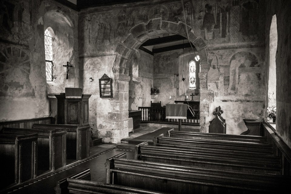 Earlier this week I made a point of going out to take some more images for my Churches Project. I was moderately pleased with my afternoon’s work, had packed away all my gear and was making my way back to the car. I had parked in front of an open barn and as I walked from the church towards my car I noticed the afternoon light glinting on the rear of the barn and in particular the long corrugated roof which nearly reached the ground. The rivets all pointed towards a small group of ivy clad trees with countryside beyond, all of which I rather liked.